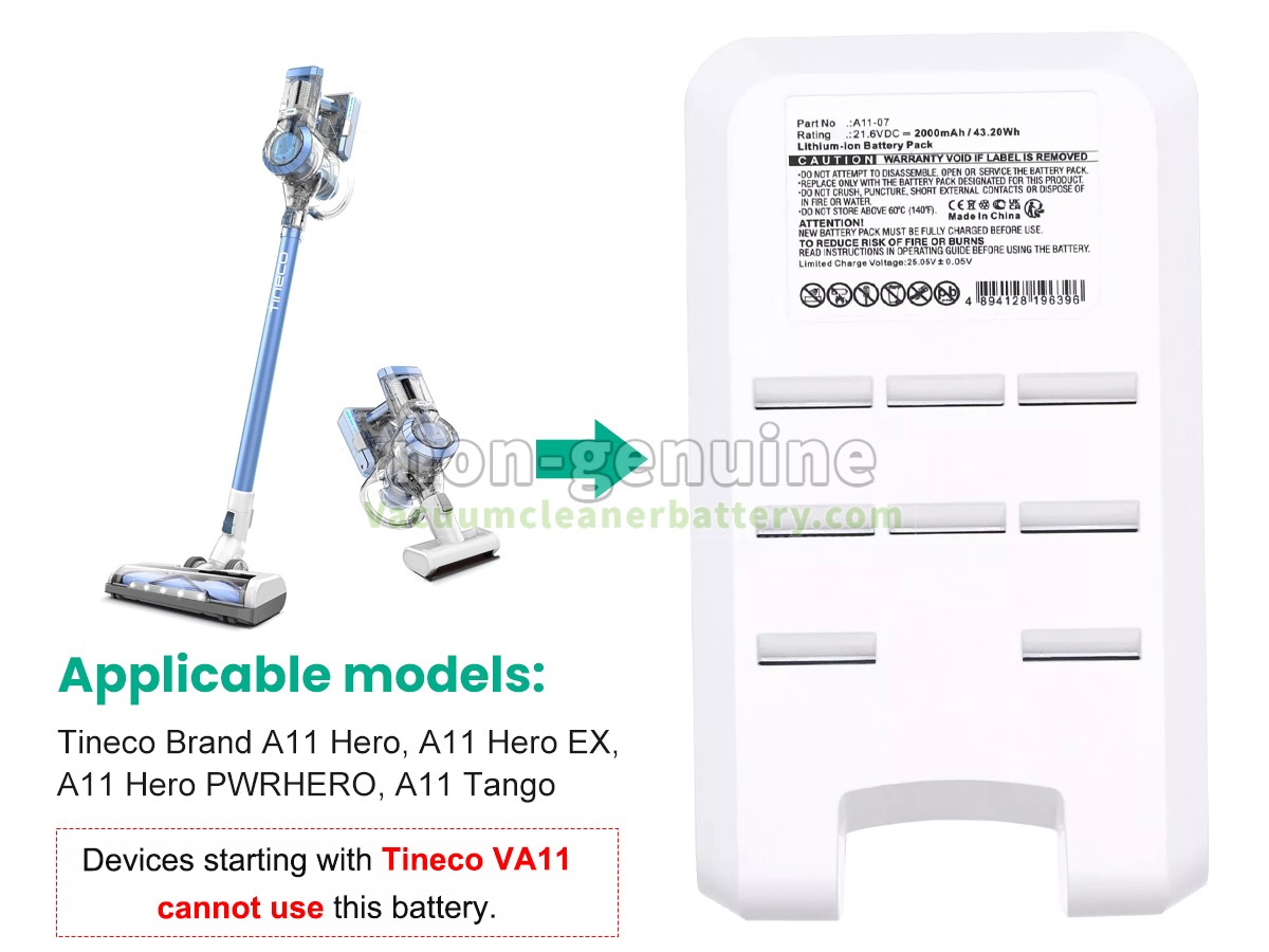 - Check the compatibility list: Each product page lists the models that are compatible with the Tineco A11-07 replacement battery. Please confirm your model is included.